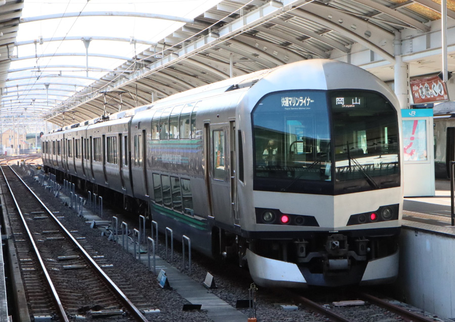 快速「マリンライナー」は、観光列車としての役割が大きいのですが、 本四備讃線が開業して40年近く経ち、坂出などから岡山への通勤客の足としても活躍しています。 今のところ更新予定はなく、まだまだ瀬戸大橋を渡る姿は見られそうです。