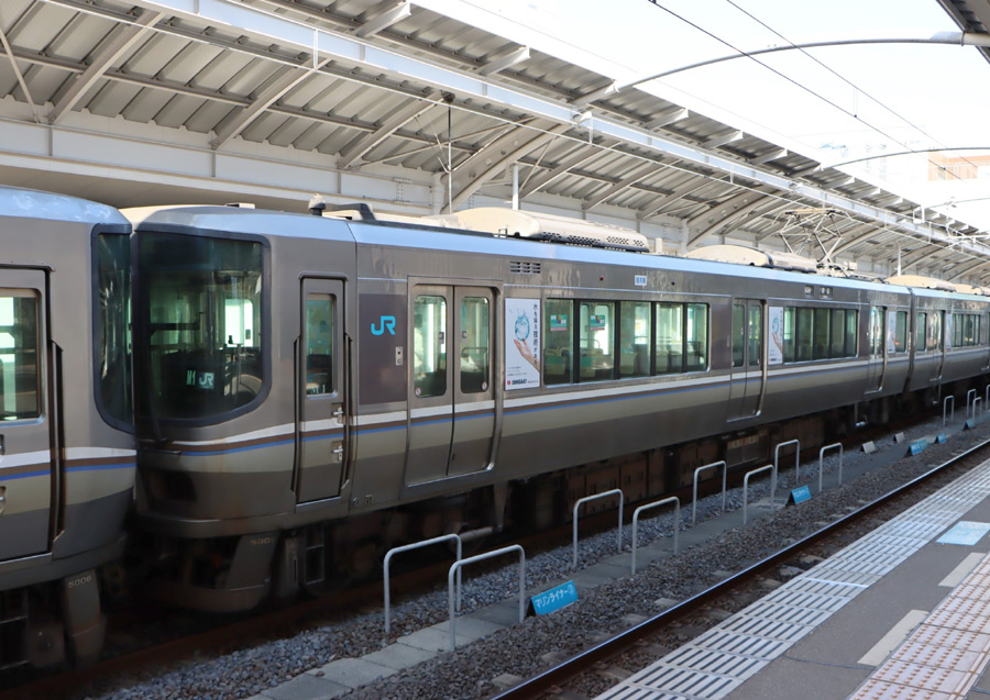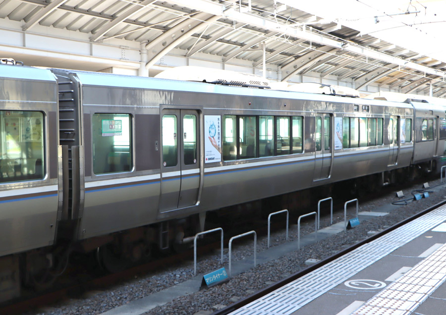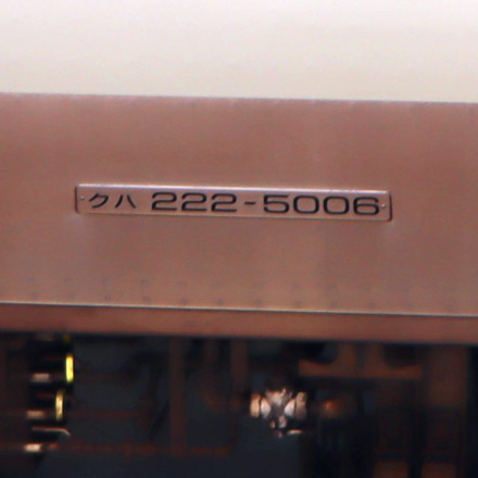 この日に、トップナンバー編成と併結していたJR西日本のクハ222-5006の形式番号の表記です。 最近のJR西日本車は全てこのようなプレート式となりました。 |