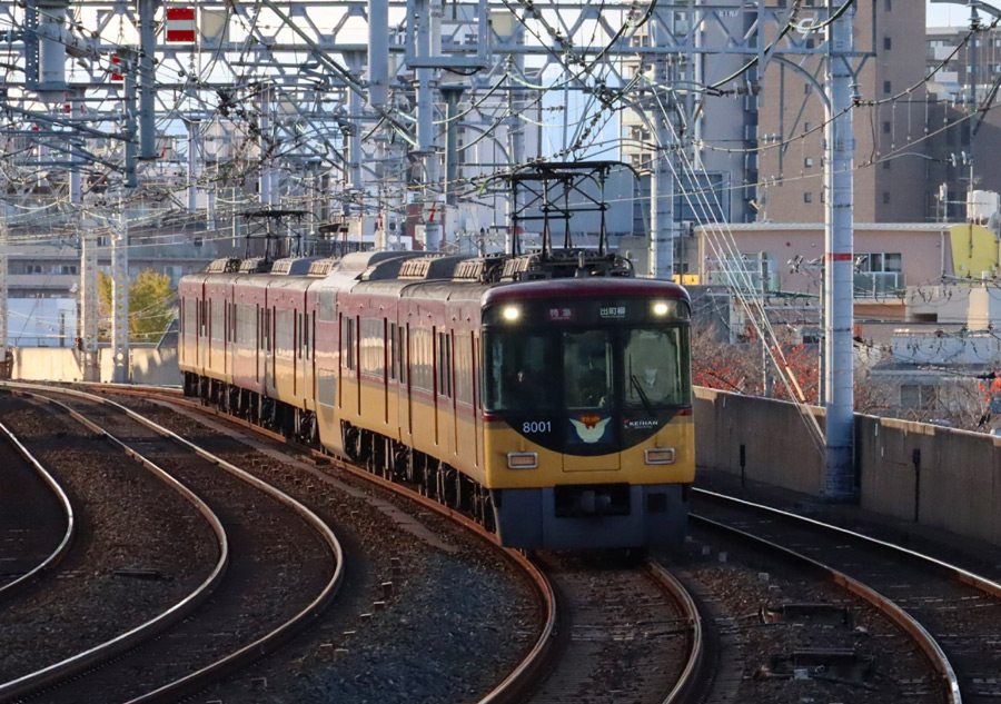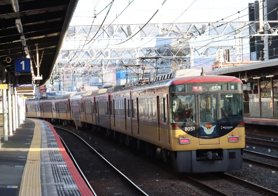 現在、京阪特急は、2008年(平成20年)中之島線開業時に誕生した3000系(2代目) も使われていますが、特急の主力は、いまなお 8000系です。