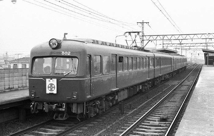 ホームに停車中のモ802。次の車輌がク711ですが簡易運転台なのでサ701と外見は同じように見えます。
