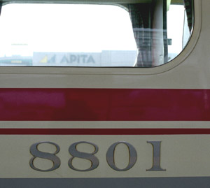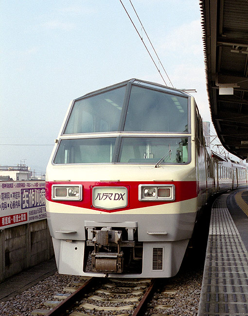 海に面した街を囲むように背後に迫る山には三河湾スカイラインが通り、 蒲郡が中京圏の観光地だったことを行ってみて初めて知った次第です。 その蒲郡のアクセスにパノラマDX8800系が使用されていました。 モ8800形は、パノラマハイデッカー席・セミコンパートメント席・ラウンジ席などで構成された特急車で、 昭和59年に2連2本が登場しています。その後、62年に2本が増備され、 更に平成元年にはサ8850形を組込み3連化されています。 マイカーに対抗すべくプライバシーを重視した内装ですが、結果的に定員も少なく、 こんな車が生れたのもバブルと無縁とは言えないように思います。 そんな内装が最近はお荷物になっていたのでしょうか? セントレア開業の影で平成17年3月に廃車になってしまいました。(2006年12月 H・T) |