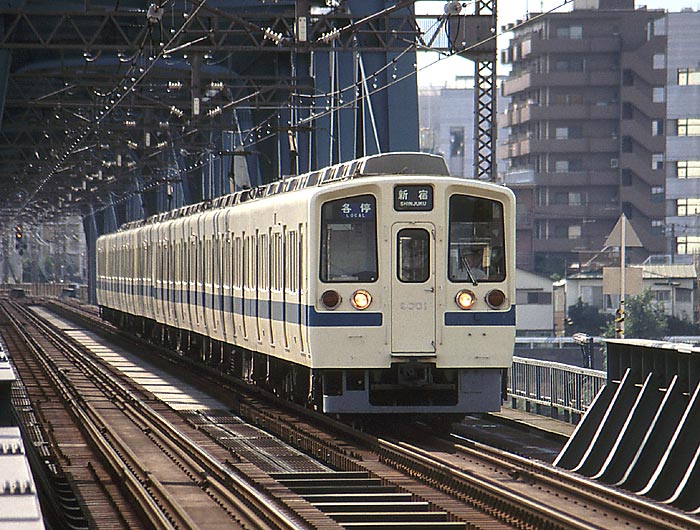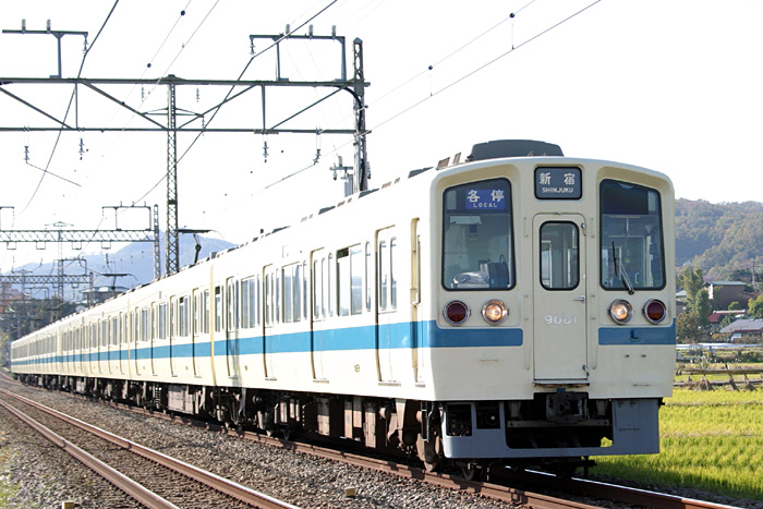 (2006年12月 H・T) 小田急の9000系は営団(東京メトロ)千代田線直通用として、1972年(昭和47年)に登場しました。 最初はオールMの4両編成10本が造られ、1973年、1974年に中間に付随車2両を挟んだ6輌編成が造られています。 当初は4両+6両を10本造る予定でしたが、千代田線乗り入れは9本で賄えることになり、付随車2両を新造、 4両編成の間に入れ、4両、6両編成各々9本としています。 千代田線乗入れ用として8M2Tと電動車比率を高くし、ACTを装備、 また車幅も小田急標準2,900mmより狭い2,860mmとなっています。 制御方式は小田急で初めての他励界磁チョッパを採用、発電・回生付き電磁直通ブレーキも備え、 地下鉄線、小田急線はもちろん、40‰の急勾配がある箱根登山線にも対応でき、 急行から各停まで幅広く運用できる欲張った車輌です。 1978年(昭和53年)3月31日から代々木上原から綾瀬まで乗入れを開始しています。 1990年(平成2年)に乗入れ車は1000系に引継がれ、 以降は小田急線内と箱根登山線で運行されていました。2000年(平成12年)、 4両編成車は4両+4両の8連化工事をされ、新宿〜本厚木間の各停運用が主となりました。 2006年3月で定期営業運転を終了し、 5月に秦野から唐木田までの「さよなら運転」を行い引退しています。 この車輌の特徴でもある前面窓を一段凹ませたスタイルから仲間内では「ガイコツ」 と呼ばれていましたが、個人的には気に入ったデザインでした。 しかし、走ると空気を巻き込み、窓ガラスが汚れやすかったからでしょうか、 後継車輌の1000系は出窓スタイルとなりガッカリしてしまいました。 なお、このデハ9001は喜多見検車区で静態保存をされ、海老名検車区で行われ た「2006年 ファミリー鉄道展」に展示されていました。(2006年12月 T・O) |