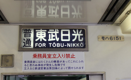 最近の新車は扉上部などに行先等を表示するようになりましたが6050系は新製時より、 運転室仕切と車端の連結部上部に行先を表示するようになっています。 2017年 5月 5日 下今市駅