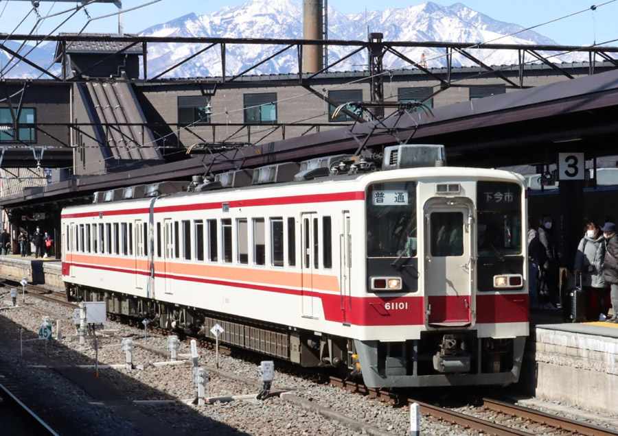 会津鉄道のトップナンバー編成である61201編成。 手前から、クハ62201+モハ61201となります。 |