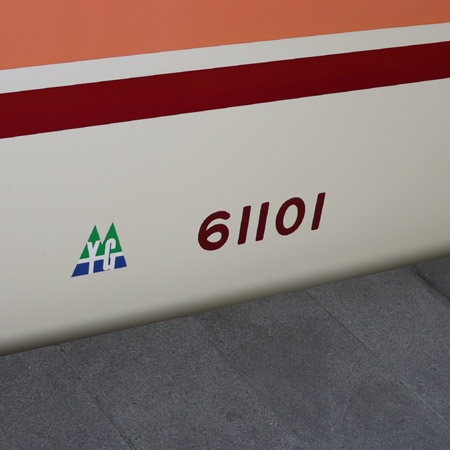 野岩鉄道に所属している6050系は、形式番号前に野岩鉄道のマークが記されています。 写真は、モハ61101です。 なお、東武鉄道の6050系も以前は、東武鉄道の紋章を記していましたが、 東武鉄道ロゴが変更の際に、客室扉の斜め上に新しいロゴを記するようになりました。 2022年 2月26日 下今市駅