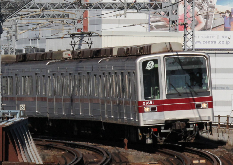 20050型のクハ21851です。見づらいですが、先頭車と2両目が5扉車となっています。 |