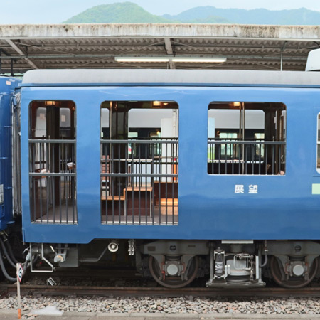 オハテ12形で展望デッキに改造された部分。扉と客室窓2個分がデッキとなりました。 写真は、オハテ12 2です。 2024年 6月 9日 鬼怒川温泉駅