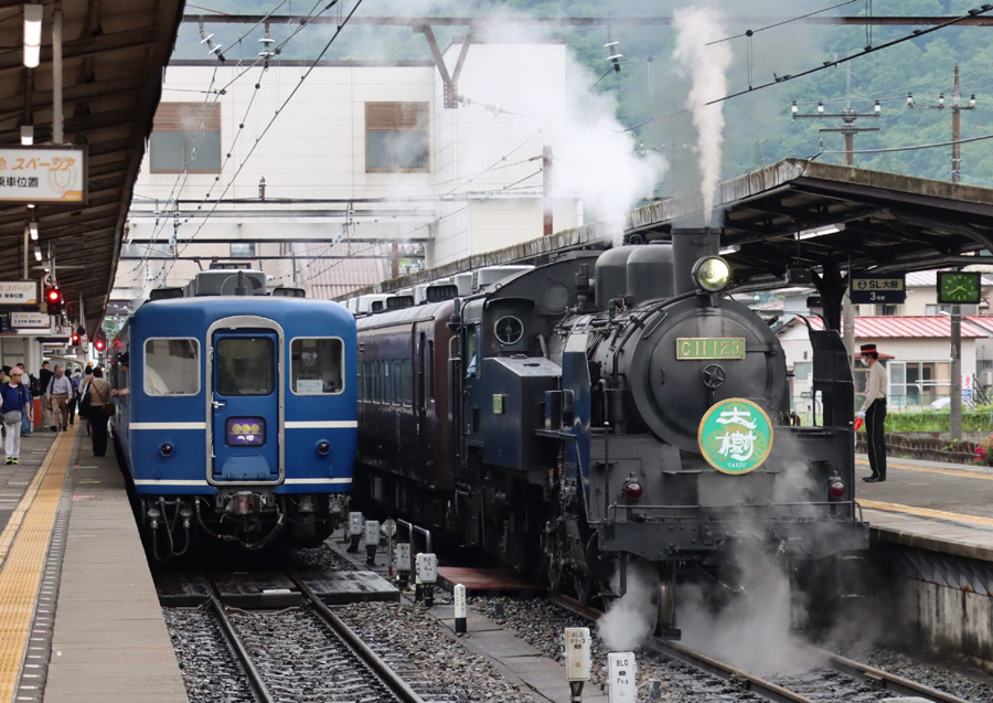 そして、2018年(平成30年)に、江若鉄道→雄別炭礦鉄道→釧路開発埠頭と渡り歩き 最後は江別市で個人に保存されていたC111(青梅鉄道公園で展示されてるC11 1とは別車両)を譲受、 動態復元を行い、東武鉄道が2020年(令和2年)創立123周年を迎えたこと、 そして3両目SLとなることで車番を C11 123 としました。 2022年(令和4年)7月より営業運転に投入されました。 SLが3両、客車は3両編成が2本体制となりました。