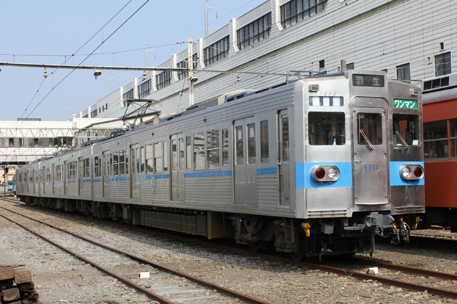 熊谷駅で出発準備中の5000系トップナンバー編成です。 先頭からデハ5001(6191)+デハ5101(6196)+クハ5201(6198)です。 |