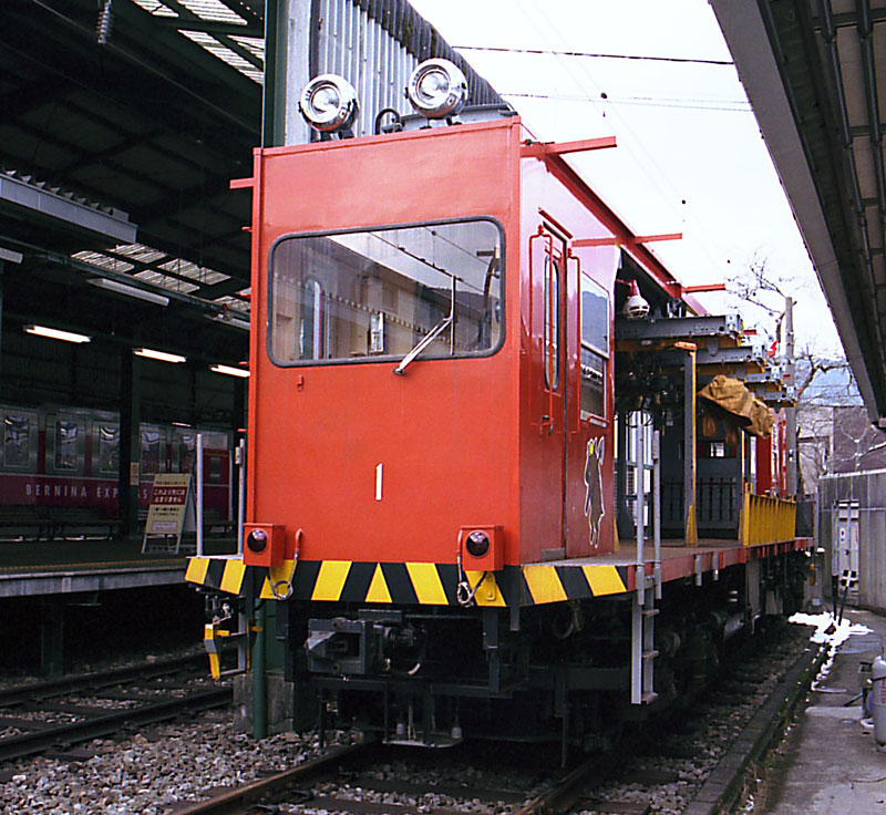 今回は箱根登山の裏方、モニ1です。箱根登山鉄道は小田原〜強羅間15kmのミニ鉄道で、 さらに小田原〜箱根湯本間は小田急車の乗り入れでまかなわれ、 登山電車が走るのは箱根湯本〜強羅間9kmにすぎません。 しかし、箱根の山を最小半径30mの急カーブ、 そして箱根湯本の標高108mから強羅の553mまでを最大80‰、 平均でも50‰で登り下りする中身の濃い路線となっています。 先人達がこの線路を人力で造りあげたのにも感心しますが、保線も大変なようです。 道路は並行して走っていますが、 箱根湯本を出発し最初のスイッチバックとなる出山信号所は車で近づくことは出来ず、 また線路と道路の高低差10m以上の所も珍しくなく、 他の鉄道のようにモーターカーや自動車を使うことができません。