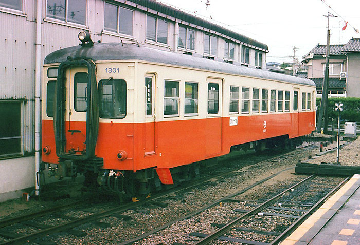 最後にモハ5103ですが、モハ3762に改番された後1986年(昭和61年)更新工事 を受け、さらに1990年の7000系導入時に電装解除され両運のまま1300形クハ1301 となり浅野川線に転属、朝夕、モハ5101と組み運用されました。こちらも浅野川 線が1500V化された1996年(平成8年)に廃車されています。