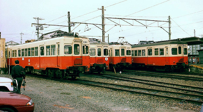 現在の北陸鉄道は石川線と浅野川線のみで両線併せても23Km弱のローカル私鉄 ですが、かっては軌道線(金沢市内線や金石線)を含めて石川県内に140Kmを持 つ大きな鉄道会社でした。しかしながらモータリゼーションの波に押され次々と 廃止され1990年代初めには現在の姿となってしまいました。 私が大学時代の鉄研仲間たちと北陸鉄道に訪れたのは1991年(平成3年)でし たのですでに石川線、浅野川線のみとなっており、さらに石川線は元東急の7000 系を導入し、新性能化が進んでいました。ちなみにこの時、一緒に旅行したH・T さんがこのトップナンバーアルバムで「7001」を紹介しています。しかしなが ら、浅野川線はまだ旧形車天国でした。