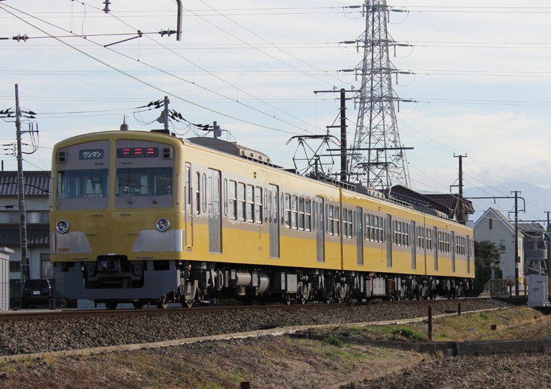 2017年1月12日、天気が良く、富士山がクッキリと見えたので出かけてみました。 東海道線を下り、三島まで来ましたので、伊豆箱根鉄道駿豆線で、 富士山をバックに鉄道写真を!と考えましたが、気にいった場所が見つからず、 定番の三島二日市〜大場間で撮影しました。 走ってきたのが、西武鉄道から譲渡された1301編成でした。 今は1979年(昭和54年)西武鉄道で登場した時の塗装、 黄色をベースにベージュ色を窓廻りに配した「イエローパラダイストレイン」として運転されています。