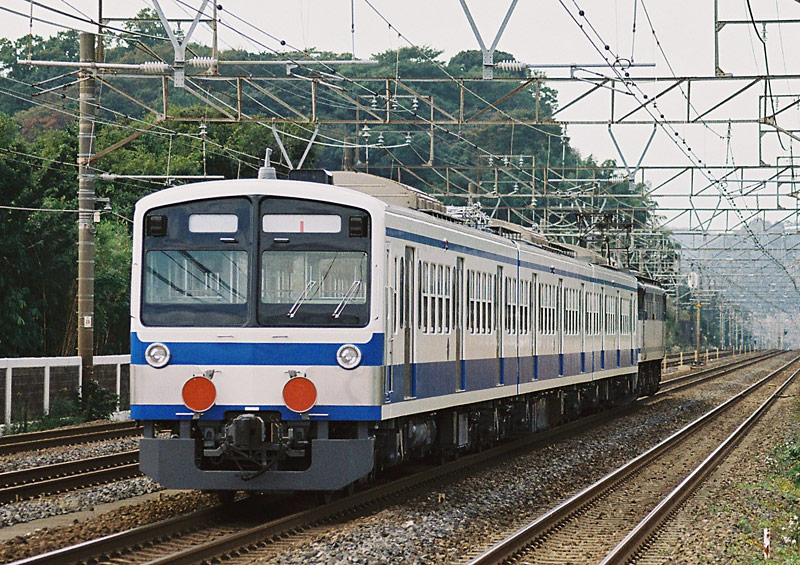 伊豆箱根鉄道へ甲種輸送中の1301編成。西武でワンマン機器取付けや化粧板張替、塗装が施工され、譲渡されました。 2008年11月5日 大磯〜二宮 |