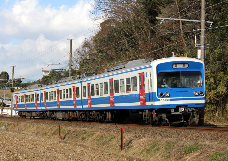 写真は手前からクハ3503+モハ3006+クモハ3005。 2017年1月12日 三島二日町〜大場