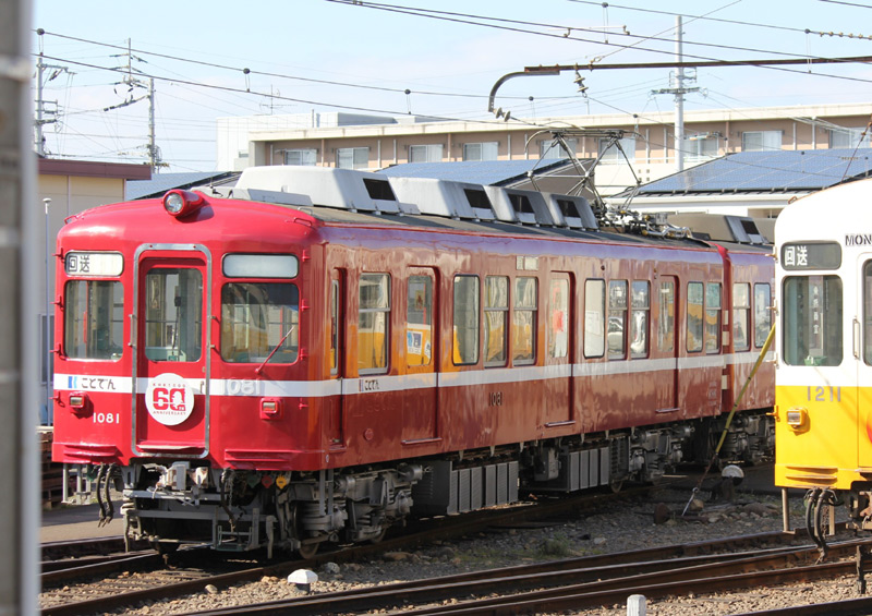 1080形1081のサイドビュー。 分散冷房装置、コイルばね台車など1300形とは差があります。 2019年3月24日 仏生山工場