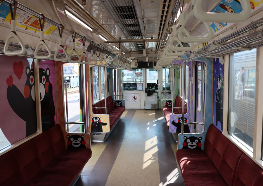 01形の車内です。車内も「くまモン」がいっぱいでした。 2024年 1月28日 北熊本駅