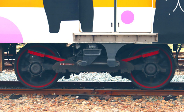 川崎重工が開発した「efWING」台車です。軽量化ため炭素繊維強化プラスチックを採用しています。 この台車は、JR四国の121系改造7200系にも使われています。 2024年 1月28日 北熊本駅