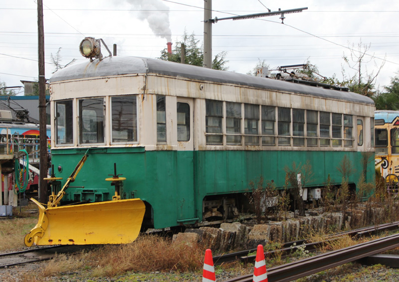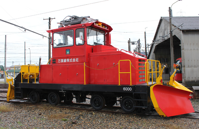さて、今回のトップナンバーは、「冬季限定車両」で、 万葉線(株)に在籍する除雪車6000型「6000」です。 屋根にパンタを装備し、凸型電気機関車のように見えますが、ディーゼルエンジン駆動です。 パンタは信号制御用トロリーコンタクター操作と架線に付着した雪を払うもので通電はしません。 この「6000」一見するとモーターカーですが「特別内燃車両」として車籍がある鉄道車両です。