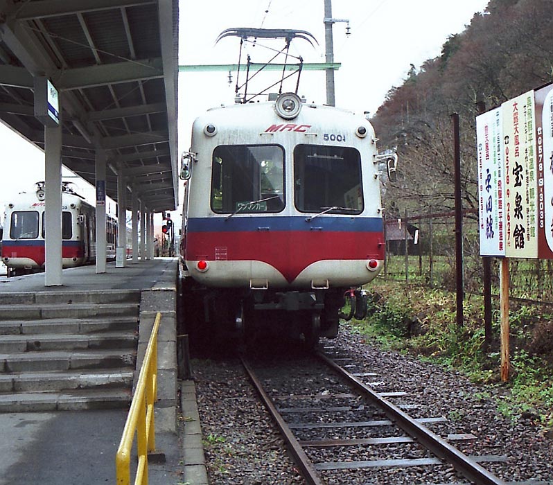 松本電気鉄道でも1986年(昭和61年)にそれまで使用していた10形置換えで8両が入線をしました。 1999年(平成11年)から2000年にかけて3000系(元京王3000系)に置換えられ全車廃車となりましたが、 モハ5005+クハ5006が残され新村車庫に保存されています。車体に錆が出て傷んでいましたが、 地元ボランティアの皆さんにより再塗装され奇麗な姿となりました。 上田交通(現上田電鉄)から返却されたデハ5001をカットボディにして渋谷駅前に置くより、 こちらの方が車両を大切にしているような気がします。(2011年1月 T・O)