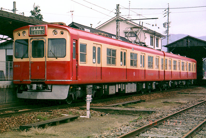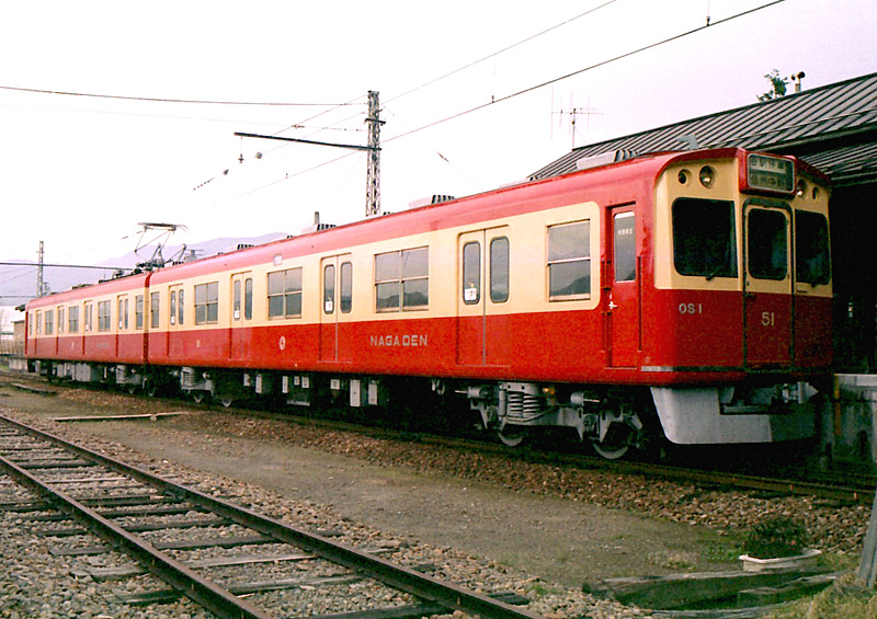 このように1960〜80年代は地方鉄道でもかなりの乗降客があり、良き時代でした。 そのような中、1966年(昭和41年)長野電鉄に彗星の如く、 突如として0系が登場して私は小学生でしたが、「なんとカッコいい電車なんだろう」と思いました。 この車両は、朝のラッシュ輸送に対応するために開発され、 Officemen&Studentsの頭文字から「OSカー」と呼ばれました。 20m車で、当時は雪国では珍しかった4扉、前面はFRPを採用、 急勾配の山の内線を考慮した135kW主電動機を装架しました。 当初の製造は、2連2本でしたが、5本の増備計画もありました。 しかし、乗降客が減少してきたことやワンマン化改造が構造上難しく、 また発電ブレーキが未装備で運転上の制約があり、 1997年(平成9年)、3500系(元、営団3000系)に置き換えられました。 廃車後も、このトップナンバー編成(モハ1+クハ51)は保存目的で須坂駅構内に留置されていましたが 2002年(平成14年)に解体されました。