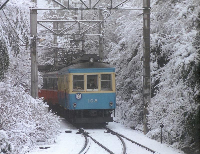 箱根登山鉄道のモハ108も旧塗装となっています。 2005年1月26日 小涌谷