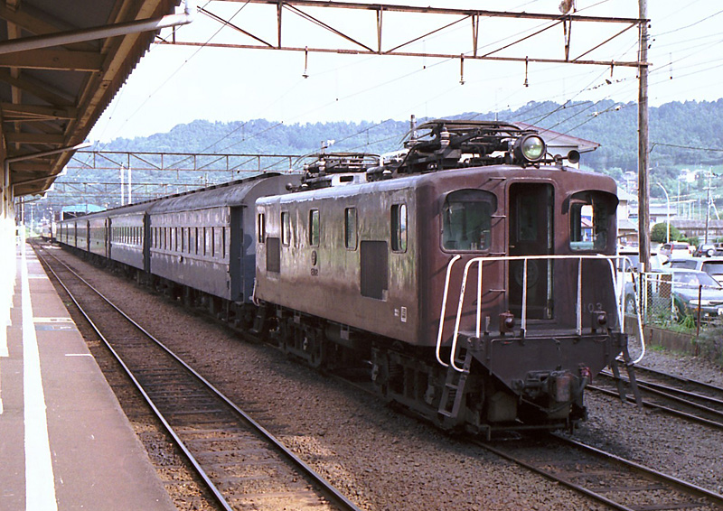 元気な頃のE103で、岳南鉄道から返却された後、 暫くはSL列車の補機などをこなしていました。 その後、休車となり、千頭駅構内に留置されていましたが、 2016年6月廃車・解体されました。 2004年7月24日 新金谷車両区
