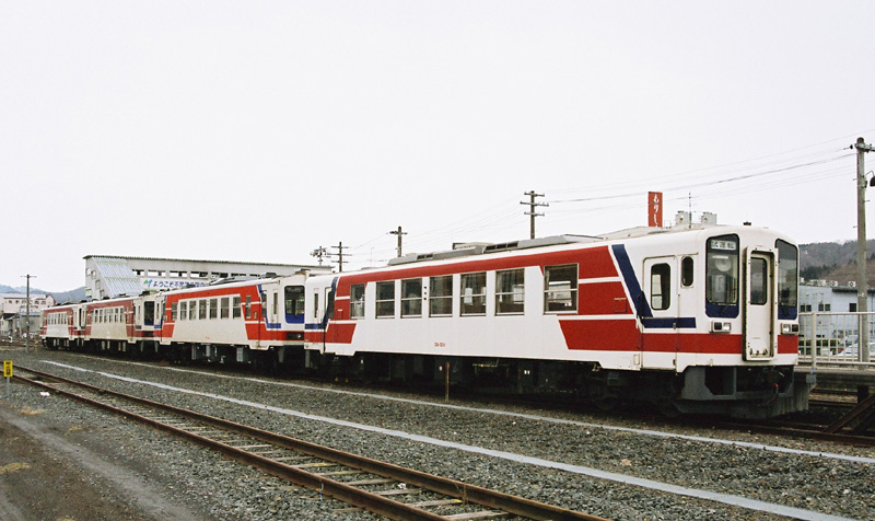 さて、当時のアルバムから、三陸鉄道の36-501をトップナンバーとして取り上げます。 36-501は、1994年(平成6年)2月南リアス線小石浜(現在は恋し浜に改名)〜 甫嶺間の矢作川橋梁上で突風に煽られ、36-108+36-204が脱線・転覆し廃車、 代替製造された車両です。 同年12月に新潟鐵工所で落成しました。 JR九州の軽快気動車キハ125とほぼ同じ車両で1両のみ在籍しました。 主に北リアス線で運用されましたが、 海岸線を走る路線で塩害による腐食や高規格線路の三陸鉄道では、 軽快気動車は能力不足だったのか、詳しい理由は分かりませんが、 2009年(平成21年)に廃車されています。 僅か14年の活躍でした。