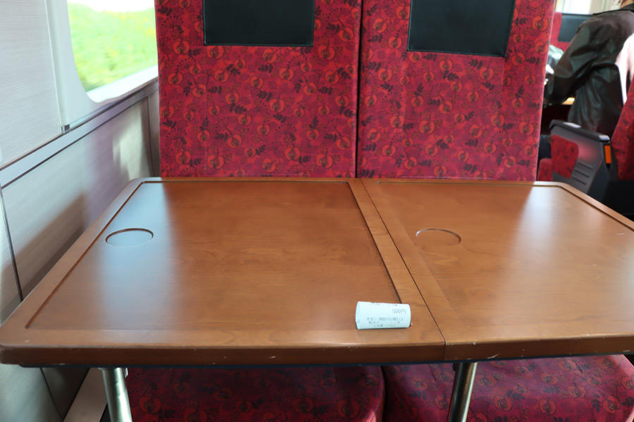 長野発妙高高原行きの普通列車なのですが、軽食付きプランで運転される 「軽井沢リゾート号」の間合い運用だったため、テーブルがセットされていました。 2022年11月 6日 長野駅