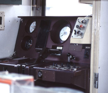 ![]() 東急で7000から7700に改造された運転台そのままのようです。 ATCの車内信号付き の速度計に見えるが東急時代にもATCは 載せていません。 (2005年10月30日) | |