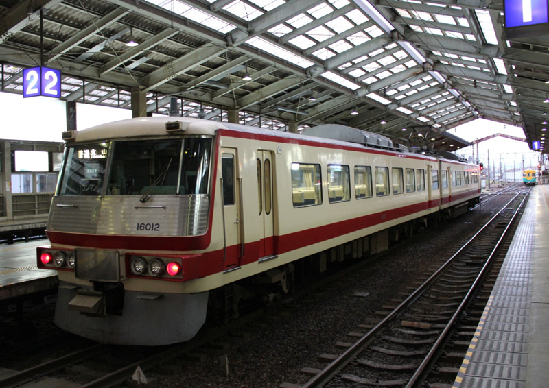 16010形は、老朽化した在来車の代替と冷房化率の向上を目的として、 西武鉄道から「レッドアロー」5000系5501編成、5507編成を1995年(平成7年)、 1996年(平成8年)に譲り受けたものです。富山地鉄では、1979年(昭和54年)に、 14760形を導入した以降、10020形などの冷房改造を進め、さらに京阪より3000系の車体を購入して、 旧型車を置き換えていました。総車両51両中47両が冷房化されました。 ちょうどその頃、西武で「レッドアロー」5000系が廃車となり、2扉クロスシート車で観光列車として、 また地鉄の輸送状況から通勤列車としても対応が可能でと判断されました。 ただし、すでに台車と主要機器を西武の「ニューレッドアロー」 10000系特急車に転用することが決定しており富山地鉄は車体のみ購入しました。 編成両端のクハ5500形と中間電動車モハ5050形計6両(3X2編成)が、 西武所沢工場から富山地鉄の南富山駅まで陸送されています。 車体到着後すぐに稲荷町工場(現稲荷町テクニカルセンター)に収容され、 改造・組立が施工されました。外観は、車販準備室とトイレは閉鎖されましたが、 あとは塗装を含め、西武時代の姿を保っています。 しかし下廻りの主要機器は他車種から調達しています。 主電動機、台車と主制御器はJR九州の485系、マスコンとブレーキ弁は京急1000形、 発電制動併用電磁直通ブレーキ本体装置は営団3000系、 コンプレッサーは東京都営地下鉄5000形の廃車発生品を流用し、 西武在籍当時はと全く仕様が異なる車両としてモハ16011形(Mc)+モハ16012形(M')+クハ110形が誕生しました。 そして、優等列車の「アルペン特急」「うなづき」から普通列車まで充当されています。 当初から第2編成は先頭車車端の車販準備室及びトイレは撤去され、 窓と吊革を新設し立ち席スペース化されていましたが、トップナンバーの第1編成も、同様の仕様となりなりました。 その後、利用客減少が続き、デッキ仕切りの縮小、料金箱設置などのワンマン化改造と編成の短縮化が行われました。 MM'のため、中間電動車モハ16012形とクハ110形の機器を総入れ替えするという大掛かりな工事を行っています。 その際形式も入れ替りました。 モハ16011形+クハ110形+モハ16012形となり、クハ110形は増結用としました。 なお、MM'ユニットであるため、クハ110形には引通線が新設されています。 しかし増結作業に手間がかかることで3連での運用が減り、 2010年(平成22年)に運用離脱となりましたが第2編成は、水戸岡デザインの観光列車「アルプスエキスプレス」へ再改造され、 再び3連化されました。第1編成に組み込むクハ111は2016年に廃車されました。