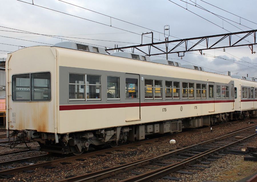 14760形グループでは異端の増結用車両クハ175。 別形式と表現されることもあるが、前面は14760形の前面と同一であり、車内も変わりません。 ただし、連結側は連続窓風2窓の非貫通です。 大半の列車がワンマン化されて、現在は運用機会が減り、本線で見ることは少なくなっています。 2015年11月15日 稲荷町車両基地