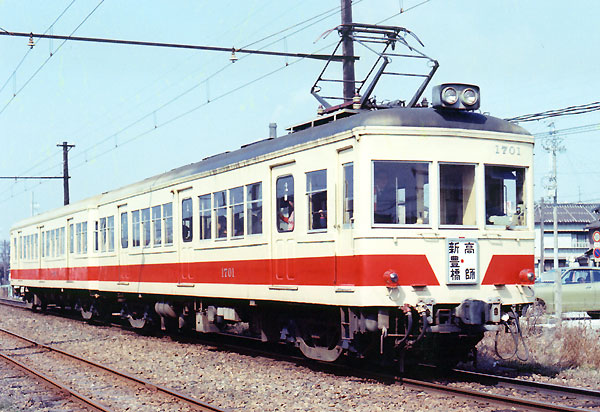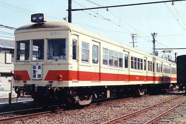 元、西武鉄道のモハ200形で、同じ形態のク2701と編成を組み、 豊橋鉄道では均整がとれていた車輌であった。平成9年(1997)の昇圧まで在籍した。 (2003年11月 T・O)