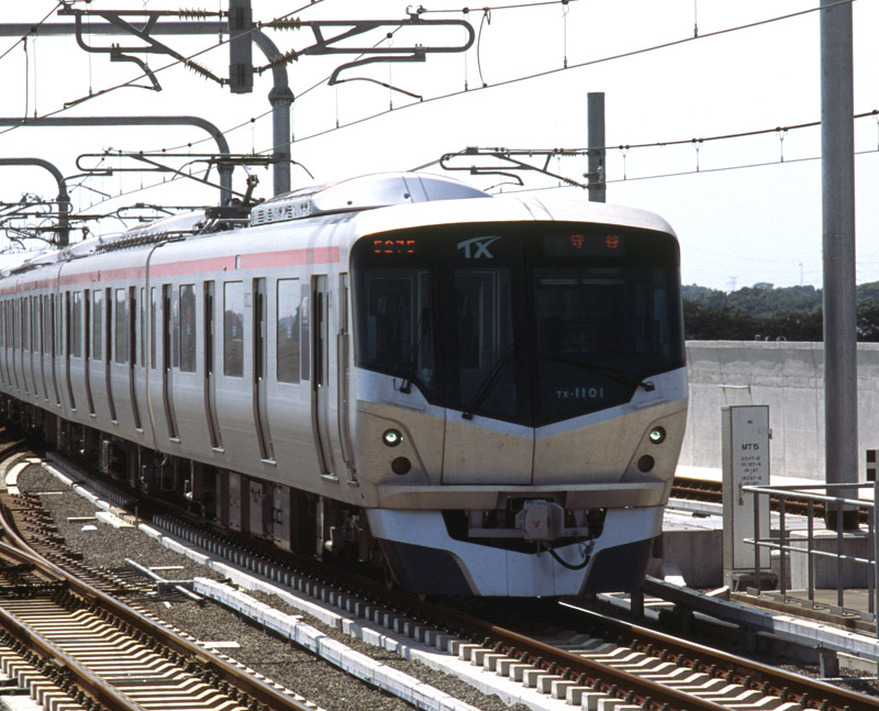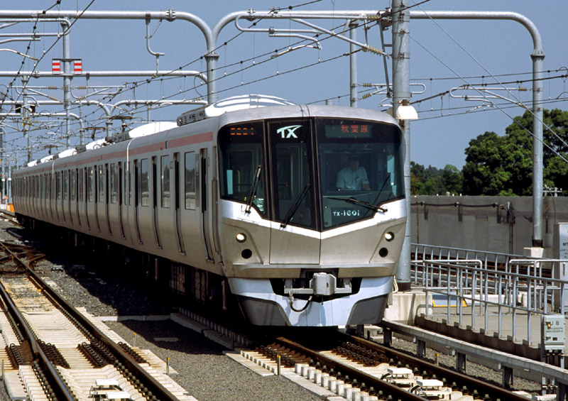 平成17年8月24日に秋葉原とつくばの間に通称つくばエクスプレスが開業。 守谷までの運用の直流車TX1000系14本とつくばまでの交直両用のTX2000系23本が用意されています。 どちらも6連で、中間にセミクロス車を設定したTX2000系に対して、 区間運転用のTX1000系はオールロングシートです。 開業から10年になりますが、乗客は倍増しているそうでなによりです。